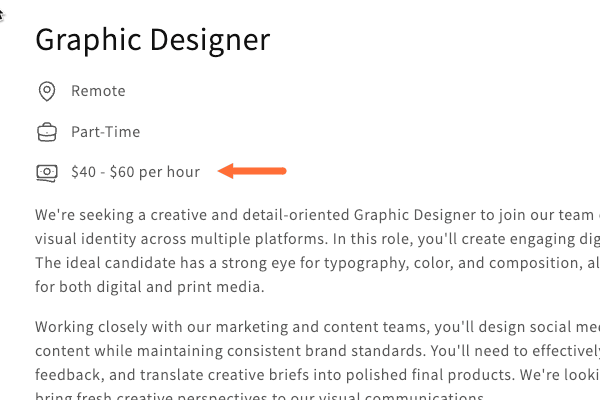 Prominently display payment expectations for your job openings with the salary attribute. Adding this information also improves search results with the Google Jobs integration.